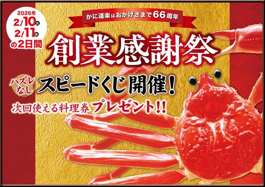 2月11日【創業満66周年】 創業感謝祭開催!! かに道楽 西日本地区限定