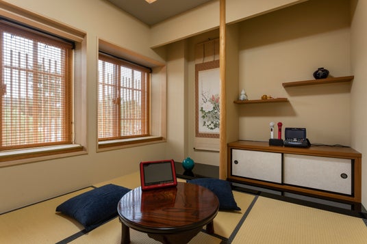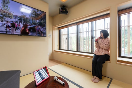 世界遺産・二条城に面した風情ある和室には、意外性抜群の業務用通信カラオケ「DAM」と本格的な防音設備を導入しました。カラオケ利用していても各寝室ではその音は全く聞こえないため、お子様を寝かしつけたあとに大人だけで盛り上がることもできます。