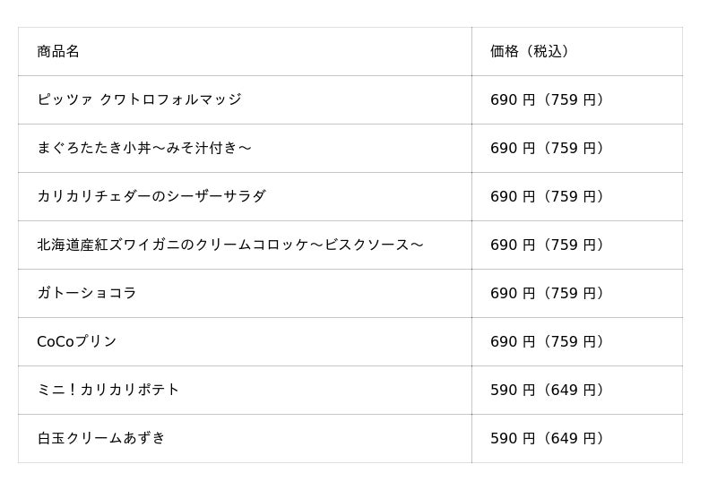 ※メニューや販売価格等は変更になる場合がございます。