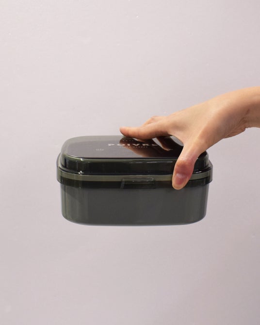 - 透明なフタはベルトや止め具がいらないワンタッチで開け閉めできる設計。パーツが少なく軽量なので持ち運びしやすく、お手入れも簡単です。