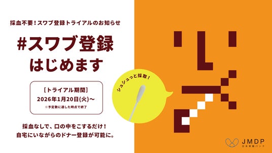 公益財団法人日本骨髄バンクは、最速で2026年度中の本格導入を目指す新しいドナー登録方法「スワブ登録」について、2026年1月20日(火)よりトライアル(第3回)を開始いたします。