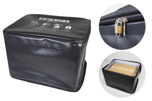 特徴:収納時もコンパクト!折りたたみタイプの宅配ボックスです。盗難防止にドアやハンドルなどに固定できる防犯ワイヤーと南京錠がセットになって安心して設置できます。配達員さんにもわかりやすいようにフタに使い方手順を記載!