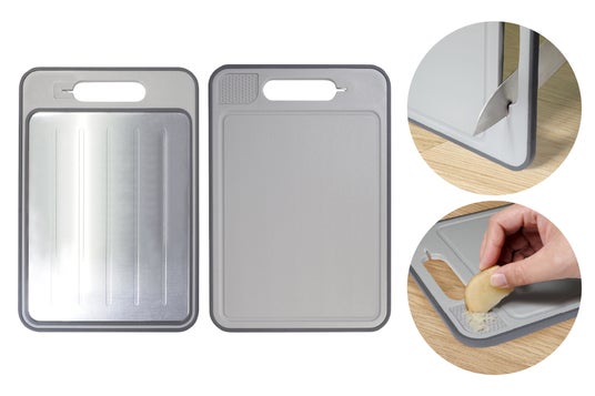 特徴:1つで4つの機能!熱伝導で素早く解凍する解凍プレートはもちろん、まな板・おろし器・包丁研ぎが付いたマルチプレート。カチコチに凍った肉も解凍を素早く、解凍時間も約5倍に短縮!熱伝導率に優れたアルミ素材のプレートがあなたの調理をアシストします!さらに両面使えてとても便利♪