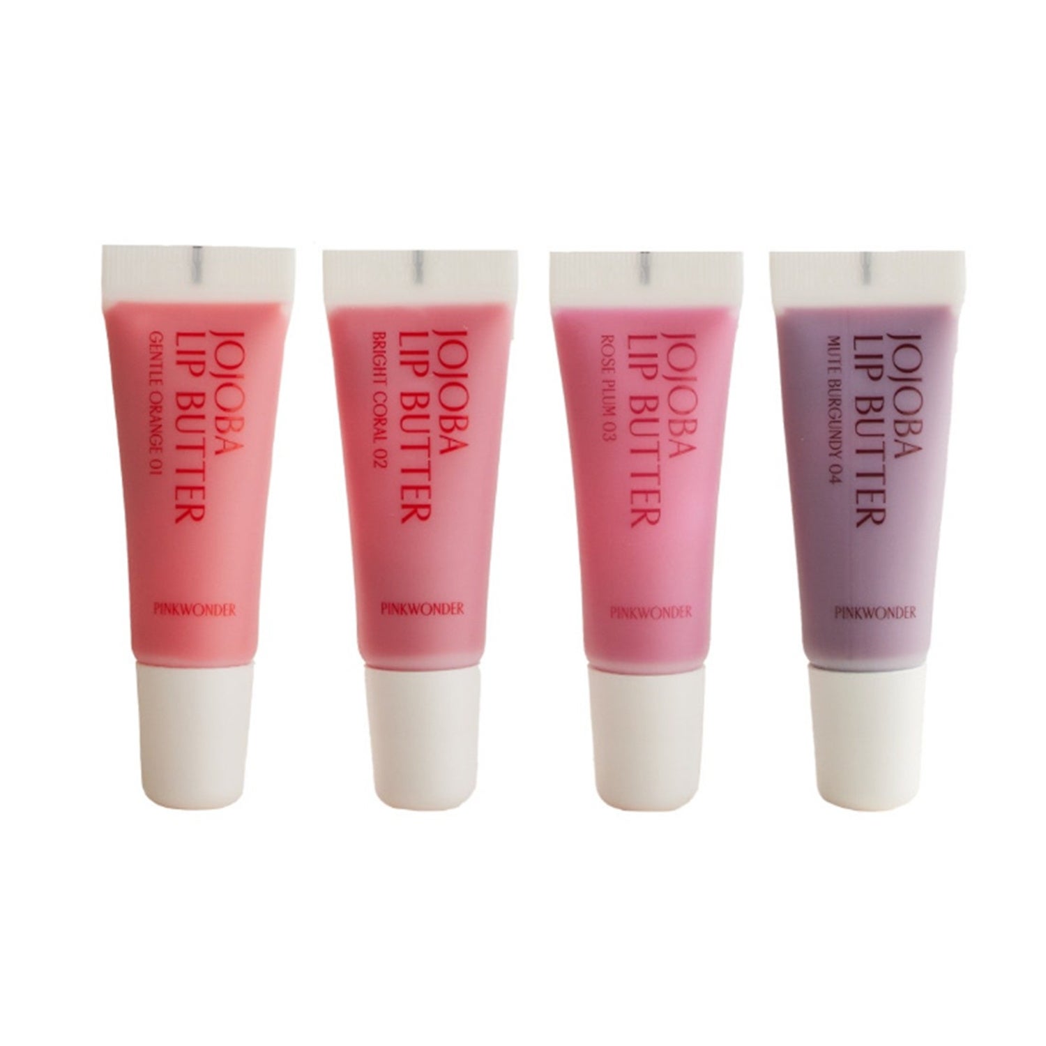 ホホバリップバター ジェントルオレンジ 01/ブライトコーラル 02/ローズプラム 03/ミュートバーガンディ 04 各7.5g / 各¥2,500 (税込)