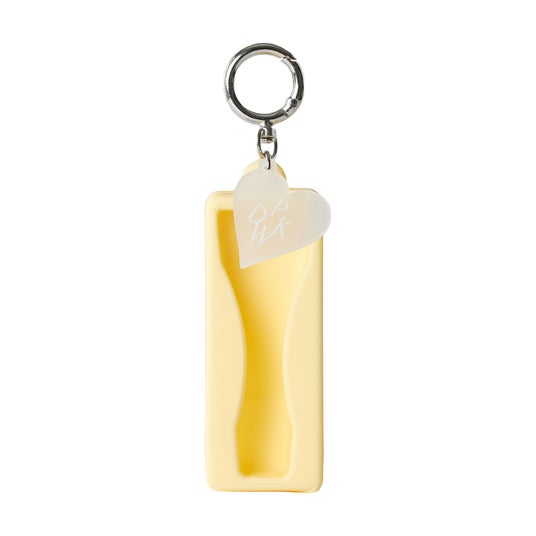 柔らかいバターのようなシルエットで「ホホババターバーム」または「ホホバリップバター」を携帯できるホルダー兼キーリングです。