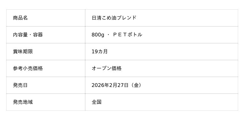 こめ油のおいしさをもっと手軽に「日清こめ油ブレンド800g」を新発売