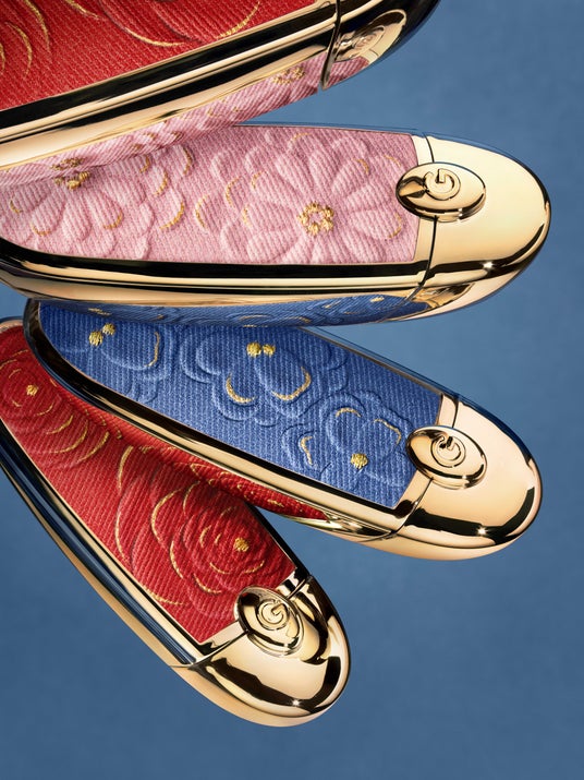 素材の錬金術師とも称されるゲランは、「Nona Source」のデニムを美しく昇華させ、ダブルミラー付きのカスタマイズ可能な<ルージュ ジェ ケース>を彩りました。染色、エンボス加工、刺繍、そしてゴールドの箔押しプリント。この4つの仕上げ工程により、デニムのデッドストック素材は、洗練されたリップスティック ケースへと生まれ変わりました。3種の<ルージュ ジェ ケース>が、メゾンが愛してやまない花々の世界へと誘います。