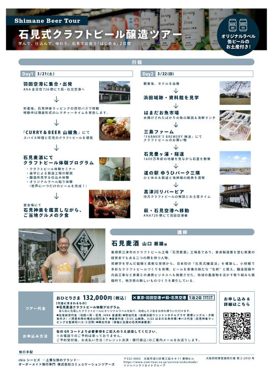 島根県アンテナショップ「日比谷しまね館」(東京都千代田区有楽町)は島根県江津市のクラフトビールメーカー「石見麦酒」と連携し、現地・江津市での製造体験等を通して、島根を体感する「石見式クラフトビール醸造ツアー」を企画しました。
