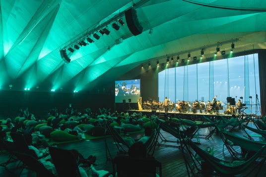 オーケストラの目の前で寝そべり、生演奏を浴びることができる、臨場感たっぷりのお席です。
