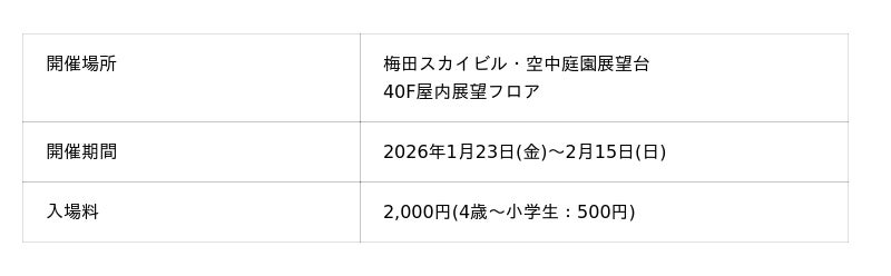梅田スカイビル・空中庭園展望台では2026年1月23日(金)~2月15日(日)期間中バレンタインイベントを開催いたします。