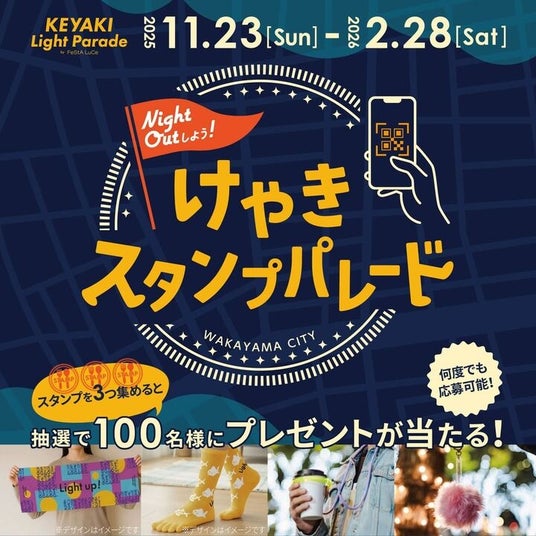 上記イベントを起点に、和歌山けやき大通りイルミネーション実行委員会が展開する回遊型デジタルスタンプラリー「けやきスタンプパレード (※) 」と連携し、市内飲食店等への回遊促進と消費喚起につなげていきます。
