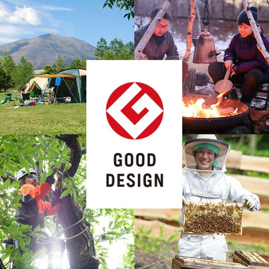 広葉樹を中心に自伐林業を展開し、遊休山林や耕作放棄地では植生循環を促す養蜂にも取り組んでいます。木は薪や建築素材に、蜂蜜は食材や加工品として、年間8万人が訪れるキャンプ場「北軽井沢スウィートグラス」や企業合宿施設「TAKIVIVA」で主に活用。浅間北麓の地域資源の価値化とキャンプ場をはじめとする場づくりを軸にした循環型地域未来創造事業で、2021年度のグッドデザイン賞において『グッドデザイン金賞』を受賞しました。