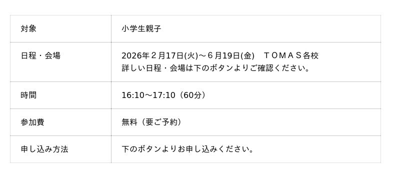 受験生はもちろん、低学年のお子さんもぜひご参加ください。