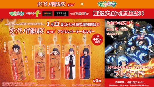 TVアニメ『炎炎ノ消防隊 参ノ章』の限定カプセルトイが登場! 透明感あるデザインの「アクリルバーキーホルダー」を1月21日(水)より「かぷえぼ」にて展開開始