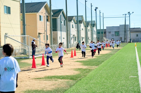 子どもたちは、トップアスリートから直接指導を受けながら、サッカーの基礎動作や、走る・自転車に乗るといったトライアスロン競技の動きを体験。競技の枠を越えた「マルチスポーツ」に挑戦することで、楽しみながら全身を使った運動に取り組みました。