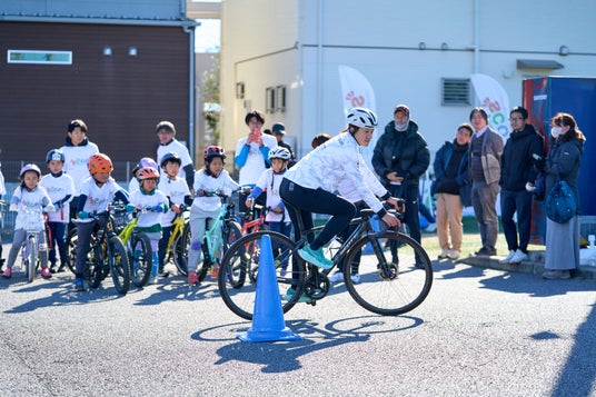 また、サッカーとトライアスロンを融合させたオリジナルのミニゲーム「サッカー×トライアスロン!?」では、リフティングした後に自転車に乗り、最後にランといった新たな挑戦に子どもたちも奮闘しながら、一生懸命ゴールを目指す姿が見られ、会場は大きな盛り上がりを見せました。