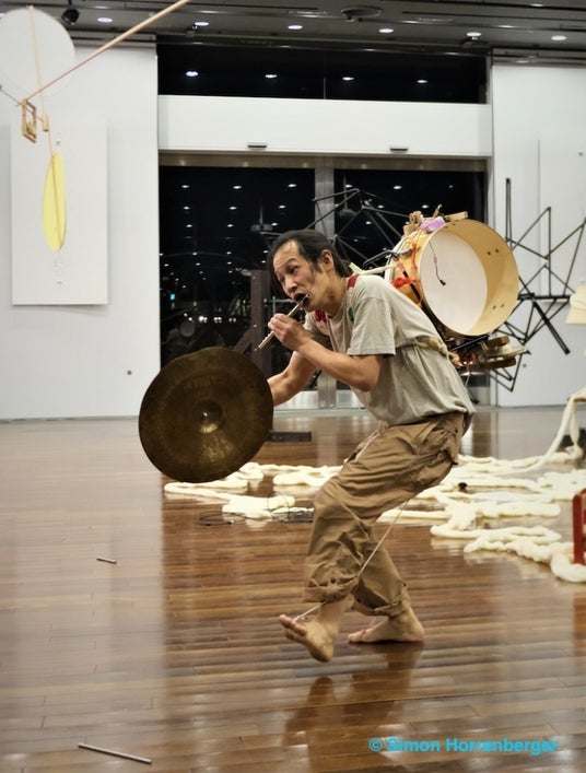 西原尚さんが考案した口と身体を使った楽器「ワオン・ホン」を体験するワークショップ。この楽器の仕組みはまるでオオカミの遠吠えのよう!?みんなで上手にオオカミの遠吠えを操って、2日目には音楽隊を結成します。不思議な音を奏でながらユニモ周辺を練り歩こう!