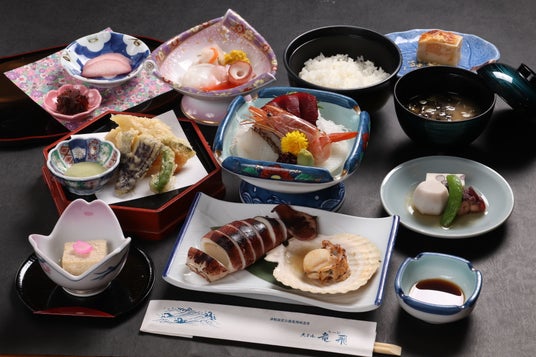 龍飛崎のすぐ近くにあり津軽半島・最北端に佇む「ホテル竜飛」で新鮮な海の幸を使用した海鮮御膳の昼食と津軽海峡が目の前に広がる絶景の大浴場・露天風呂で温泉をお楽しみください。