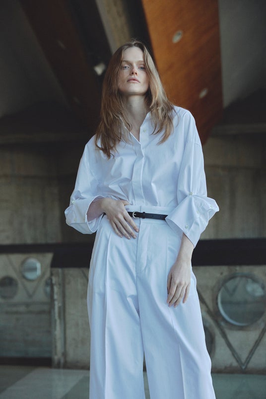 柔らかい綿リヨセルの素材を使用しモードなリジットカラーでシャツとワイドパンツを別注しました。