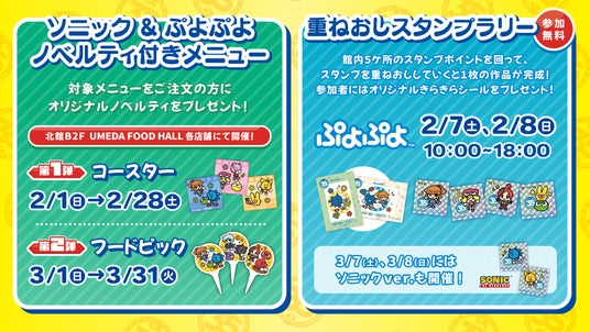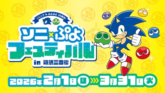 「ソニック」と「ぷよぷよ」の35周年を記念し、大阪・梅田のショッピングセンター「阪急三番街」にて、『ソニ×ぷよフェスティバル in 阪急三番街』を開催します。期間中は館内がコラボ装飾やフォトスポットで彩られます。