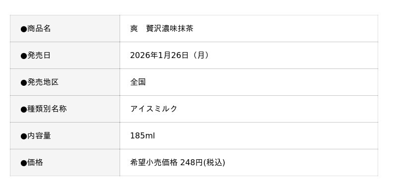 ワンランク上の爽体験 第3弾!!一番摘み抹茶を使用した濃厚抹茶フレーバーのプレミアムな爽『爽 贅沢濃味(こいあじ)抹茶』2026年1月26日(月)より全国で発売