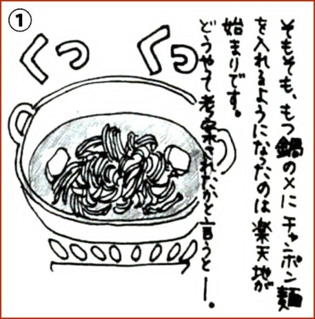 もつ鍋の締めと言えば「ちゃんぽん麺」今では当たり前となったこの食べ方ですが、発祥は、福岡の天神・博多に店を構える「元祖もつ鍋楽天地」にあります。もつ鍋楽天地の創業者である水谷寿が"締めのちゃんぽん麺"生みの親なのです。