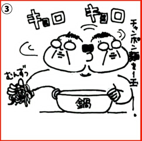 創業当時、もつ鍋に締めという概念がまだ存在していませんでした。そんな中、店舗を構える雑居ビルの1階には、昼はちゃんぽんを提供する中華料理店がありました。ある日、店をオープンする前に締めを何にしようか悩んでいる時、ハッとひらめき、中華料理店のちゃんぽん麺をコソッと借りてきたのが始まりです。