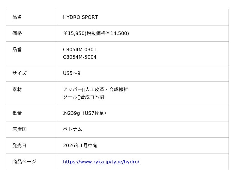 ゼット株式会社(本社/大阪市天王寺区、代表取締役社長/渡辺裕之)が取り扱う『ryka』(ライカ)ブランドより、アクアフィットネス専門シューズ【HYDRO SPORT】(ハイドロスポーツ)から春らしい爽やかなグリーンベースと人気のブラックベースの新色2色を2026年1月中旬に発売しました。