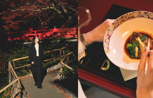 都心にありながら広大な庭園を擁する、ホテル椿山荘東京の老舗料亭「錦水」へ。四季折々の庭園を眺めながら、料亭ならではのゆったりとした時間を楽しみます。格式高い料亭にふさわしい足元には、オールデンのコードバン タッセルモカシンを選び、大人の洗練を演出。