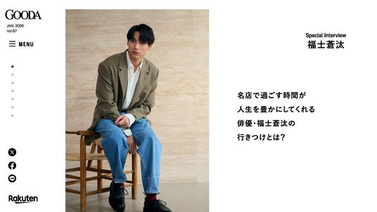 手にするだけで毎日ちょっとハッピーな気持ちになれる。そんな、とっておきを紹介しているライフスタイルウェブマガジン「GOODA」。「東京クラシック飯」をテーマにした最新号には、俳優・福士蒼汰さんが登場します。