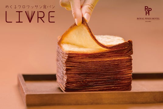 国産小⻨をベースにフランス産発酵バターを贅沢に使った生地を27層に折り重ね、小⻨とバターの香りを最大限に引き立てる製法で職人が一つひとつ丁寧に焼き上げます。「リーヴル(Livre)」とはフランス語で「本」を意味するように、まるで本のように、めくって食べる新感覚のクロワッサン食パンです。