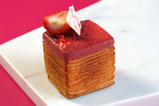 「本(Livre)」をイメージした幾層もの層が美しいミニリーヴル。今年のバレンタインは、埼玉県産の希少な高級ブランド苺「あまりん」をはじめ、厳選したショコラとホワイトショコラを組み合わせた、心ときめく3種のフレーバーを1つのボックスに詰め合わせました。