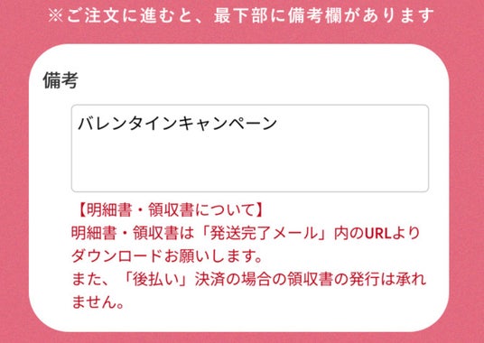 2.ご注文の備考欄に「バレンタインキャンペーン」と記入