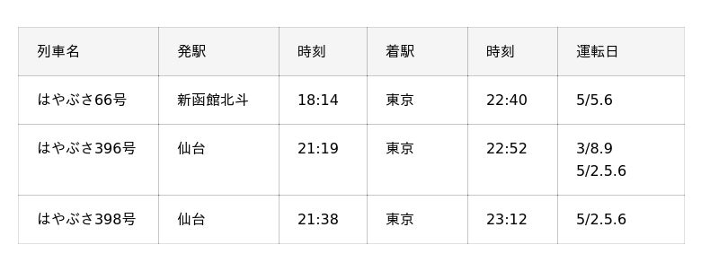 ※「はやぶさ66号」は、盛岡~東京間「こまち66号」と併結して運転します。