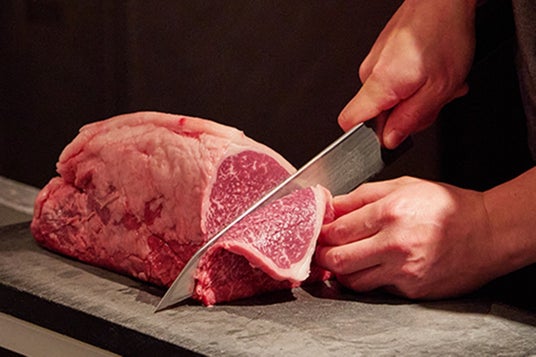 均一に仕立てた和牛を、職人の手によってさらに刻み、叩くことで肉繊維をほどき、なめらかな舌触りへと仕立てます。人の感覚だからこそ可能な繊細な調整が、赤身肉にやわらかな口どけをもたらします。噛んだ瞬間にほどけた和牛が、海苔や米と口の中で自然に調和します。和牛の魅力を余すことなく表現する、職人の技が息づく一品です。
