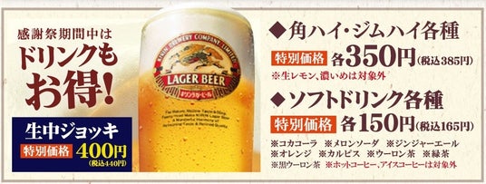 感謝祭期間中は、ドリンクを気軽にお楽しみいただける特別価格にてご提供します。生中ジョッキはなんと!1杯440円(税込)!焼肉や盛岡冷麺と相性抜群の一杯をお楽しみください。