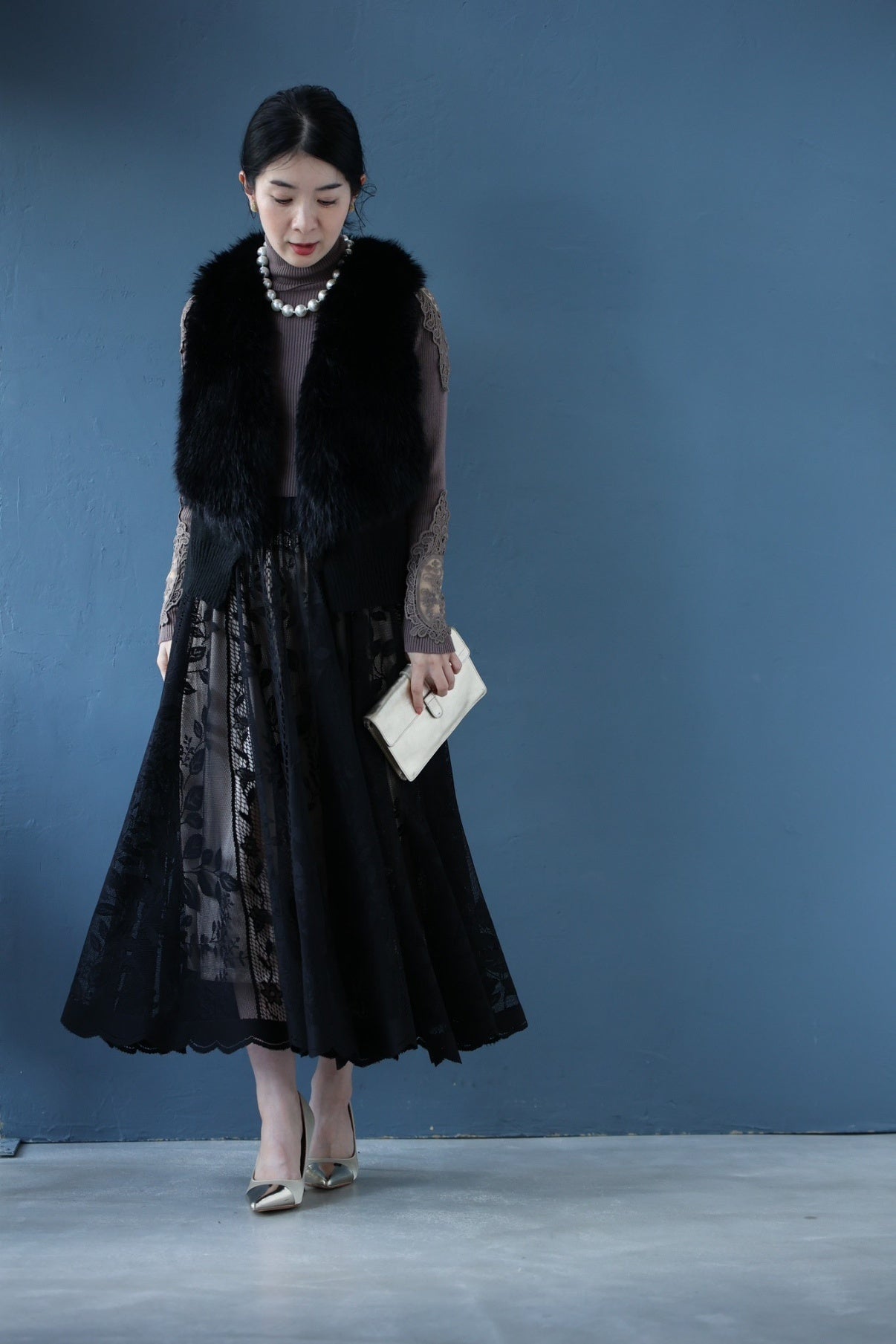 完成したレーススカートは、共創プロジェクトを通じて得られた意見をもとに設計されたアイテムです。「低身長で丈が合わない」「レースは好きだが華やかすぎる」といった声を起点に、丈感やデザインを調整しました。