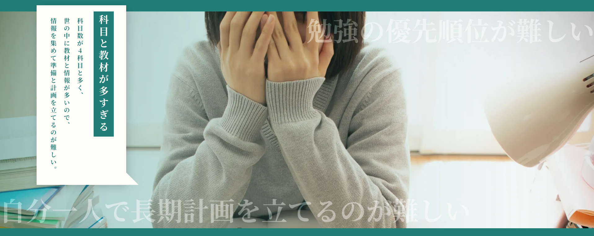- 教材の解説よりも、合格までのプロセスを客観的に整理し、伴走してほしい方