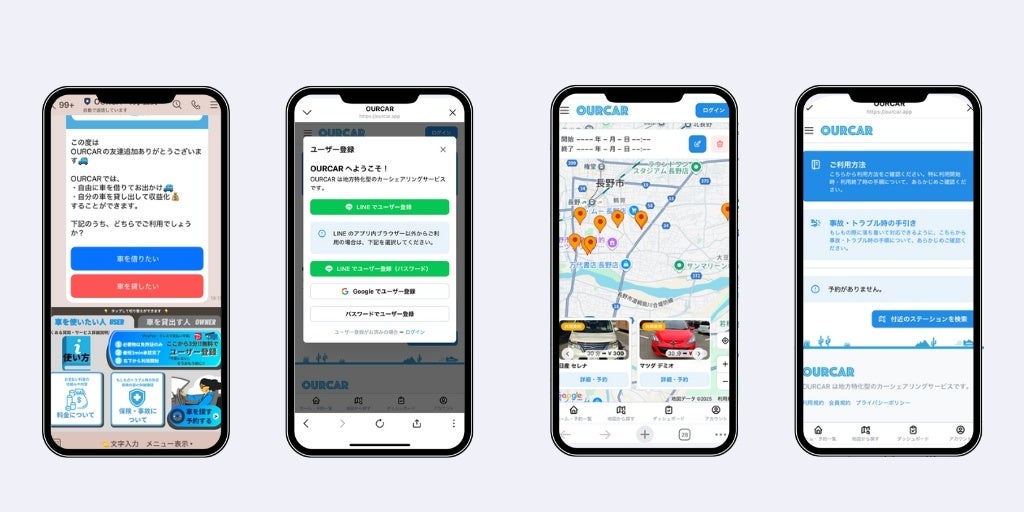■利用方法: 「OURCAR」Webアプリより会員登録後、検索・予約・解錠が可能です。