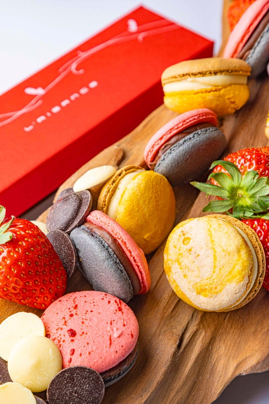 <福井市/レゾンス>西武福井店限定 バレンタイン マカロンセット[ICHIGOOJI×クロモジダークチョコ、紅映梅×はちみつホワイトチョコ](2種・計5個入、1箱)・・・2,601円