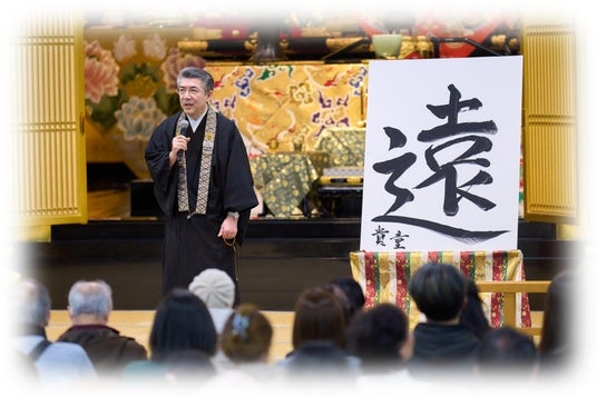 築地本願寺の恒例の行事として、年初に宗務長が選んだ今年の漢字を揮毫する行事があります。2026年、私は「遠」という字を選びました。目まぐるしく変化する現代において、私たちは何かと短期的な視点で物事を捉えがちです。たとえば若者に『ひと昔前とはどれくらいの期間をさすか』と聞くと、「5年」、なかには「3年」と答えている人もいるそうです。