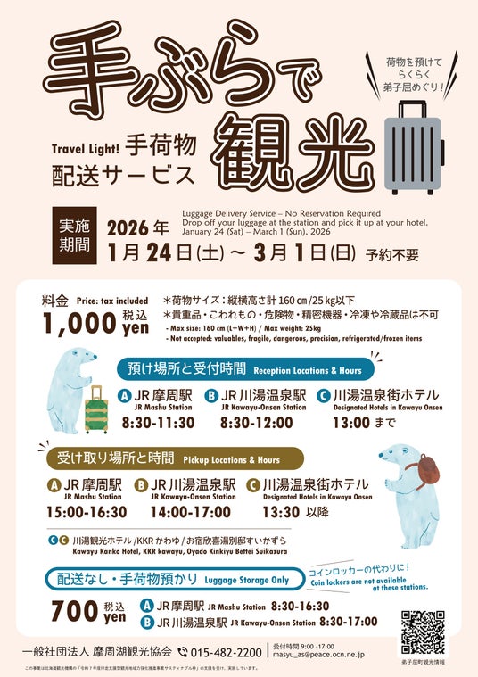 また、今年度より各駅から川湯温泉街ホテルまでの「手荷物配送サービス」を開始する。
