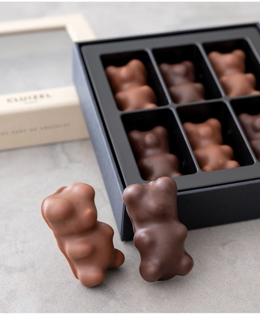 かわいいクマの形をしたふんわりギモーヴに63%のダークチョコレート、39%のミルクチョコレートでコーティング。