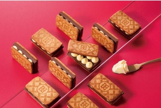 厚切りショコラにバターが溶ける。コク深いアーモンドプラリネを練り込んだ厚切りショコラ。ミルクの香り広がるバターホイップショコラをふっくら絞り、さくさくのバターサブレにはさみました。とろけ合うバターとショコラの美味しさをたっぷりお楽しみください。