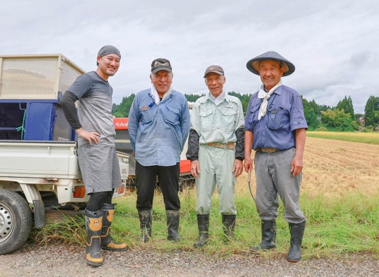 2024年秋の稲刈り時、生産組合の皆様と
