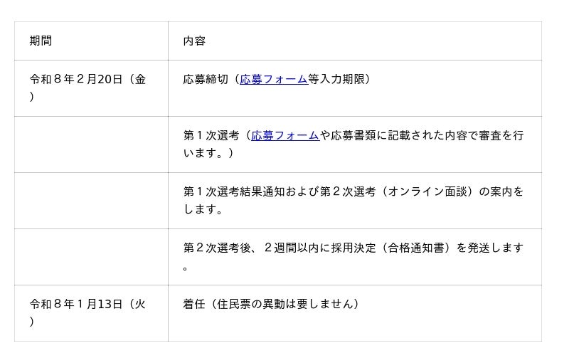 (延長不可。この期間より短い活動を希望する場合は、エントリー入力フォーム、または、応募書類等でお知らせください。)