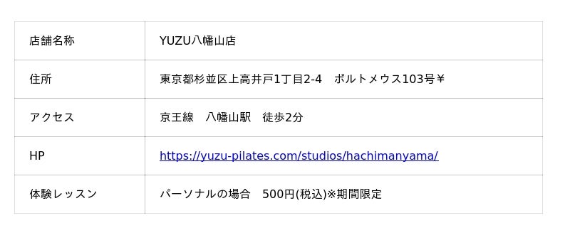 八幡山駅に、ココロとカラダの健康美をサポートするピラティスレッスンを提供しているYUZUが通算69号店目を2月3日にOPEN!