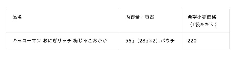キッコーマン食品株式会社は、2月2日に、具材がしっかり入ったおにぎりを、簡単につくることができるおにぎりの具「キッコーマン おにぎリッチ」シリーズから「梅じゃこおかか」を全国で新発売します。