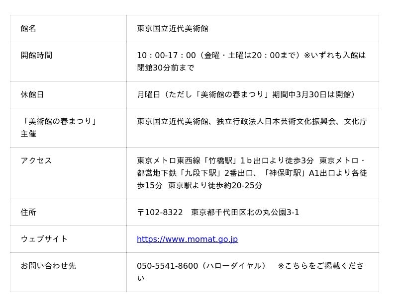 ※2月中に公開予定( https://www.momat.go.jp/extra/2026/springfest/ )