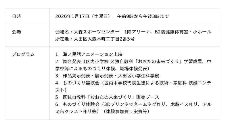 日時:2026年1月17日(土)9時~15時 場所:大森スポーツセンター
